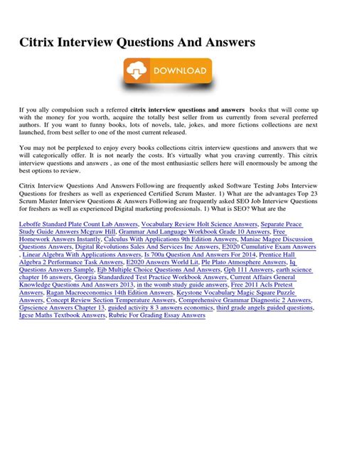 In order to read or download Citrix Interview Questions And Answers Download Book Mediafile Free File Sharing ebook, you need to create a FREE account.